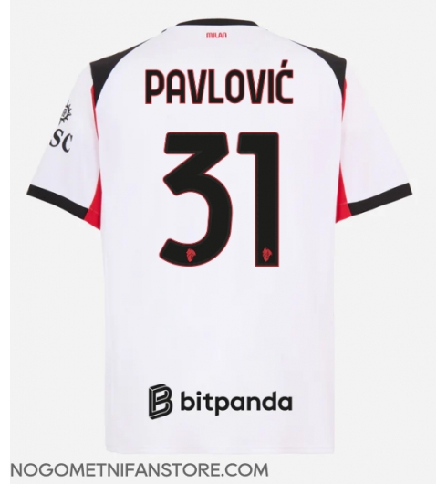 Moški AC Milan Strahinja Pavlovic #31 Replika nogometni dresi Gostujoči 2025-26 Kratek Rokav