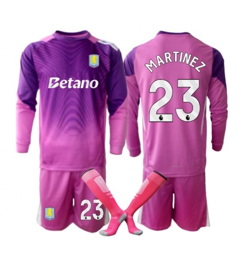 Otroški Aston Villa Emiliano Martinez #23 Vratar Replika nogometni dresi kompleti Tretji 2025-26 Dolgi Rokav (+ hlače)