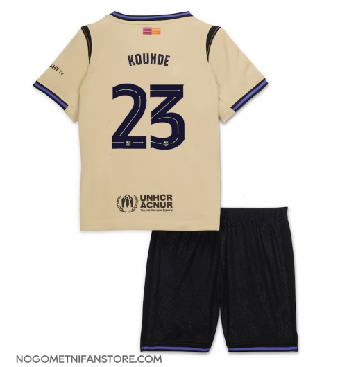 Otroški Barcelona Jules Kounde #23 Replika nogometni dresi kompleti Gostujoči 2025-26 Kratek Rokav (+ hlače)