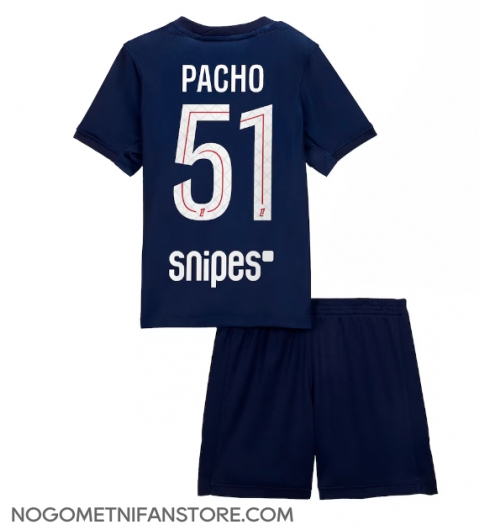 Otroški Paris Saint-Germain Willian Pacho #51 Replika nogometni dresi kompleti Domači 2025-26 Kratek Rokav (+ hlače)