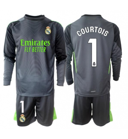 Otroški Real Madrid Thibaut Courtois #1 Vratar Replika nogometni dresi kompleti Tretji 2025-26 Dolgi Rokav (+ hlače)